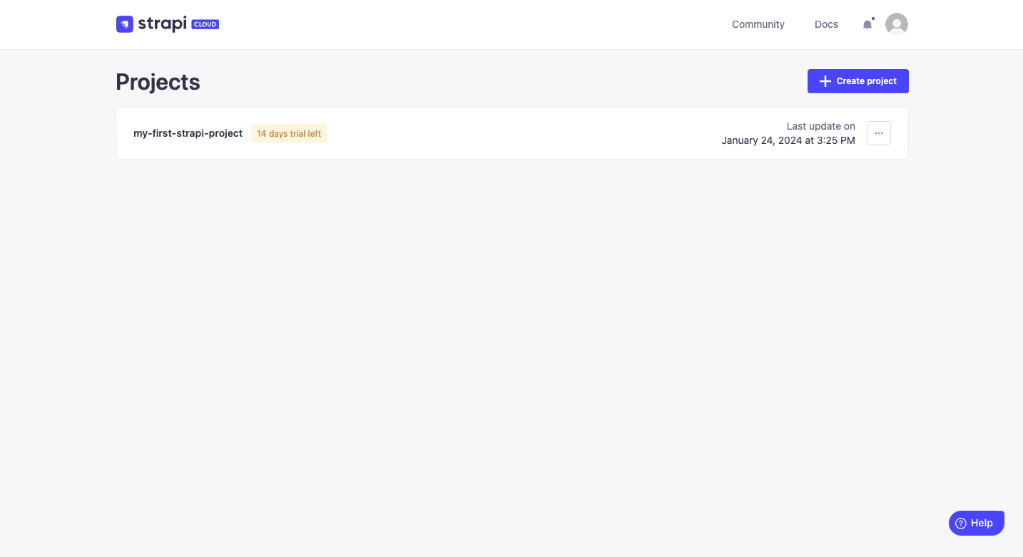 1. From your Strapi Cloud dashboard, click the my-strapi-project project.